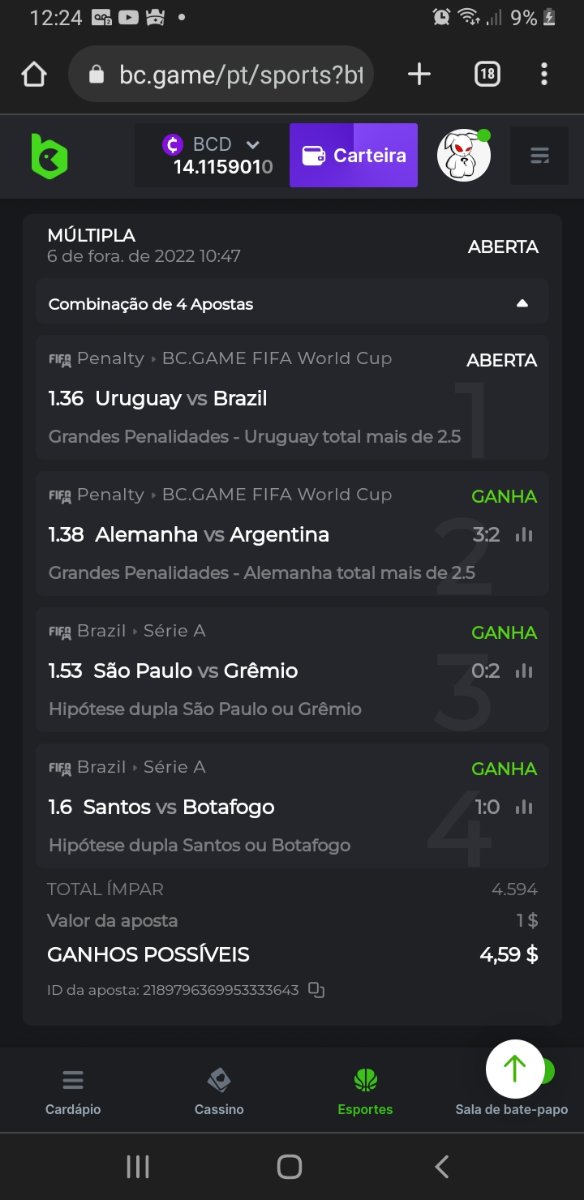 ID da aposta: 2189635424555765934 ID da aposta: 2189796369953333643 ID da aposta: 2189793509656109794 ID da aposta: 2189785427261661653
