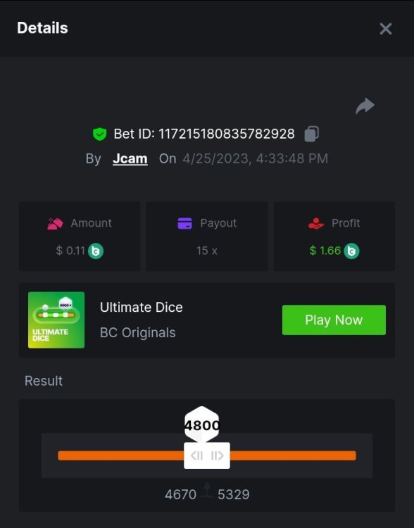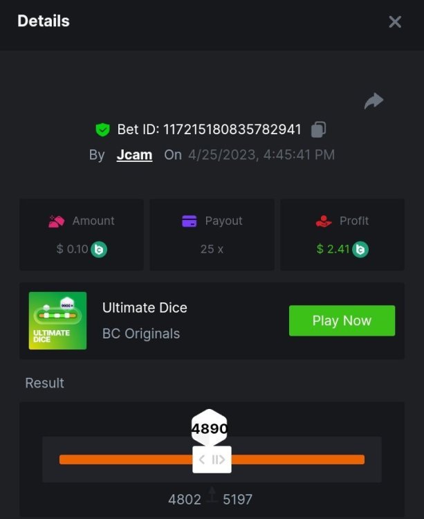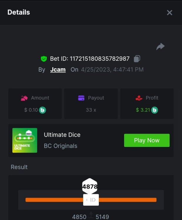 $5,000 Exclusive Weekend Ultimate Dice Prestige Challenge #85Jcam replied to BC_Jack's topic in Past Challenges https://bc.game/#/sd/118B3EL1Q2NKSZ https://bc.game/#/sd/118B44W9T4LQMR https://bc.game/#/sd/118B49GG3OWMQB