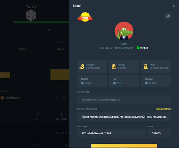 1. Roll 1: 1359348559802101 Roll 2: 1359348559802261 Roll 3: 1359348559806998 Roll 4: 1359348559809205 Roll 5: 7029534318660426 Roll 6: 7412894509564683 Roll 7: 7412894509566770 Roll 8: 7412894509567018 Roll 1 (500 sats = $0.1156 usd) – Rolled 0.00 – 5 points, Cumulative Total: 5 points Roll 2 (16,000 sats = $3.18 usd) – Rolled 12.25 – 3 points, Cumulative Total: 8 points Roll 3 (600 sats = $0.14 usd) – Rolled 0.00 – 5 points, Cumulative Total: 13 points Roll 4 (600 sats = $0.143 usd) – Rolled 0.00 – 5 points, Cumulative Total: 18 points Roll 5 (700 sats = $0.166 usd) – Rolled 0.00 – 5 points, Cumulative Total: 23 points Roll 6 (600 sats = $0.1416 usd) – Rolled 12.23 – 1 point, Cumulative Total: 24 points Roll 7 (1200 sats = $0.2937 usd) – Rolled 12.24 – 2 points, Cumulative Total: 26 points Roll 8 (600 sats = $0.1467 usd) – Rolled 12.23 – 1 point, Cumulative Total: 27 points