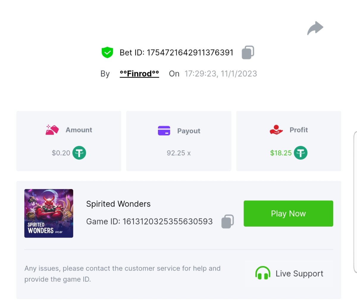 18.7 x https://bc.game/#/sd/1115K3VJGKZ0UR